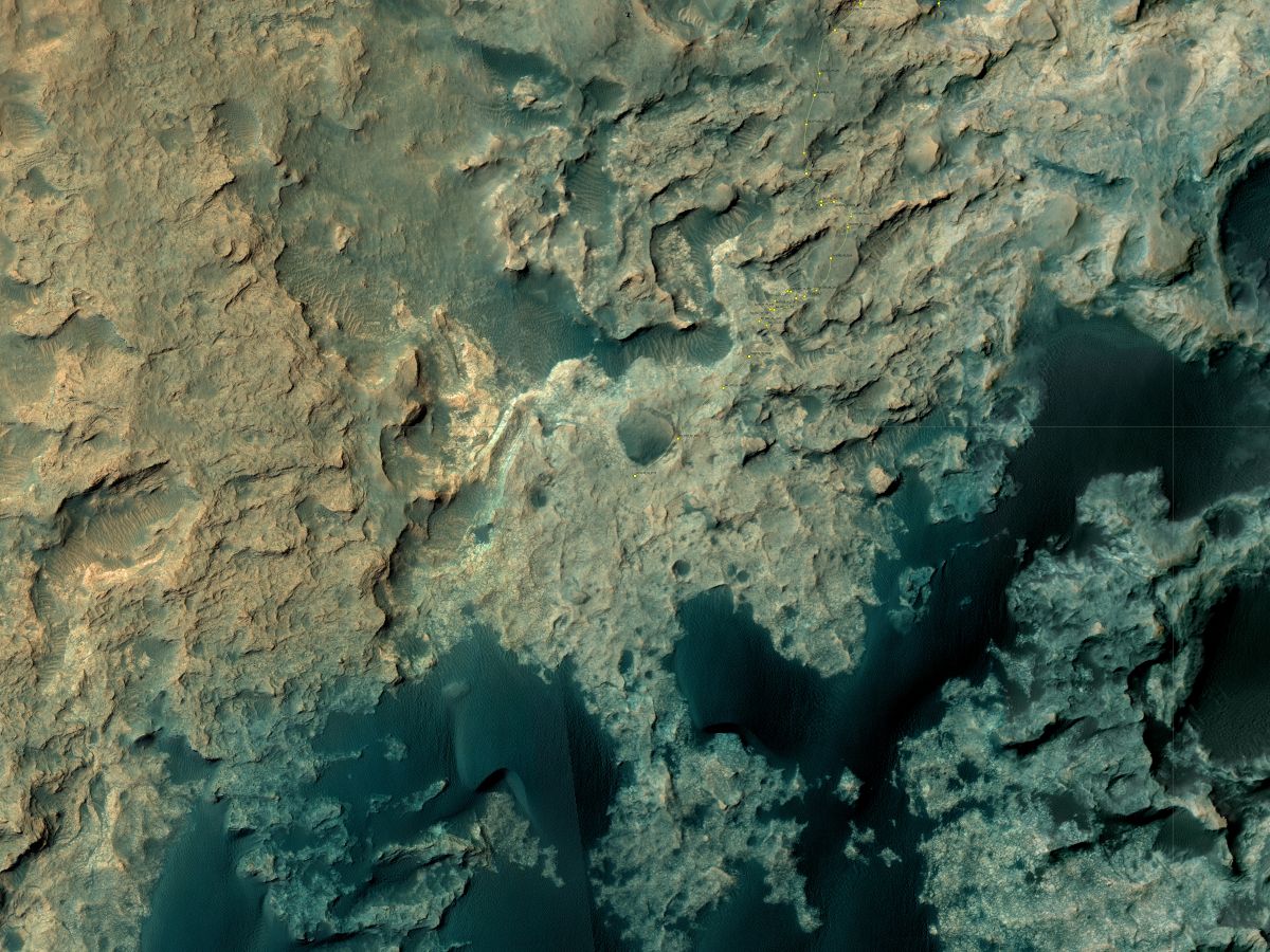 The base image from the map is from the High Resolution Imaging Science Experiment Camera (HiRISE) in NASA’s Mars Reconnaissance Orbiter.