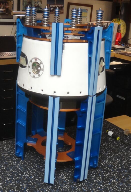 NASA’s Maraia return to Earth re-entry capsule mounted on launch cradles prior to loading it into the launch vehicle.