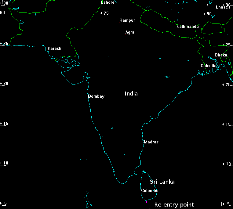 The object was expected to enter the atmosphere and start its burnout in an area above the Indian Ocean off the southern coast of Sri Lanka at around 06:19 GMT on November 13.