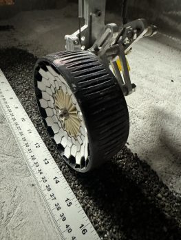 Lunar Outpost’s Eagle undergoes testing. Unit for driving on the Moon will feature special wheels and suspension design to gain traction on the lunar surface.
