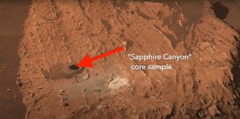 Sulfur crystals found inside a rock after NASA’s Curiosity Mars rover happened to drive over it and crush it on May 30, 2024. This discovery supports new research led by scientists at The University of Texas at Austin on what types of sulfur would be present on Mars billions of years ago.
