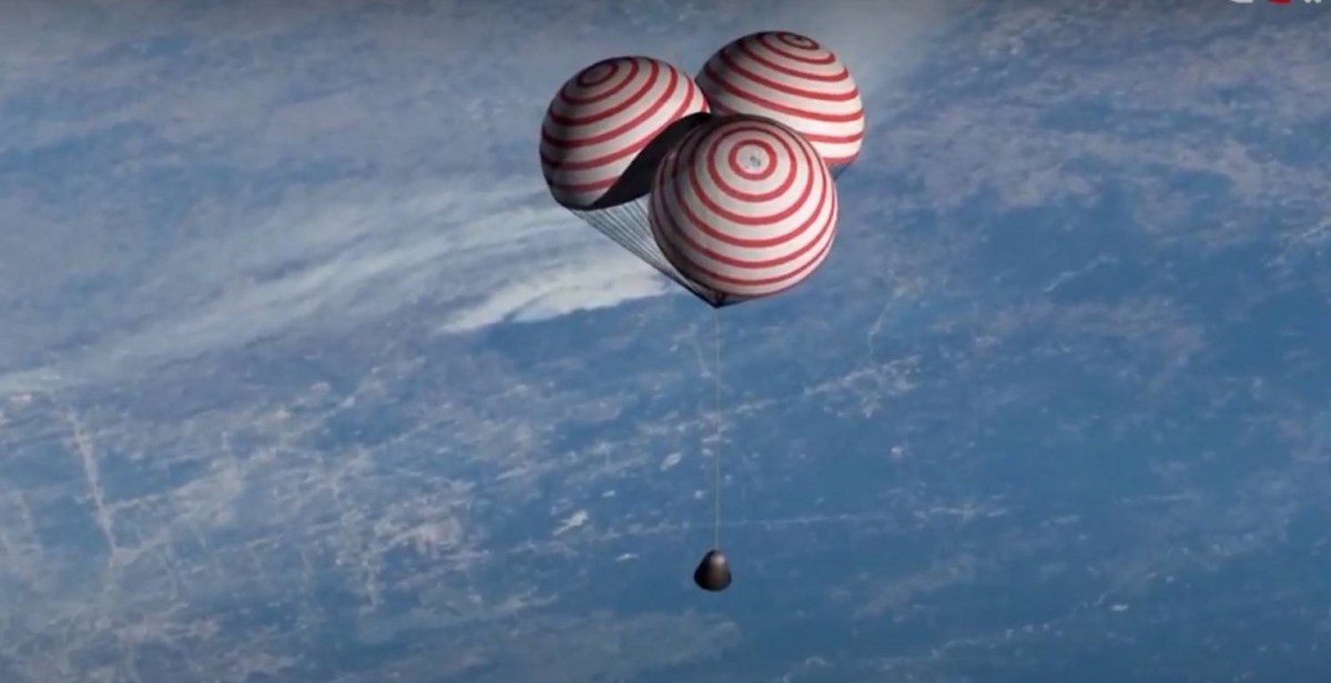 The reentry vehicle was scheduled to touch down by parachute at the Dongfeng Landing Site in the Inner Mongolia autonomous region at the end of its 19-hour space trip.