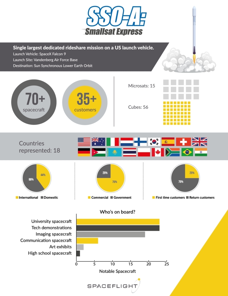 Targeted for sun-synchronous orbit (SSO), the mission is dubbed SSO-A: SmallSat Express.