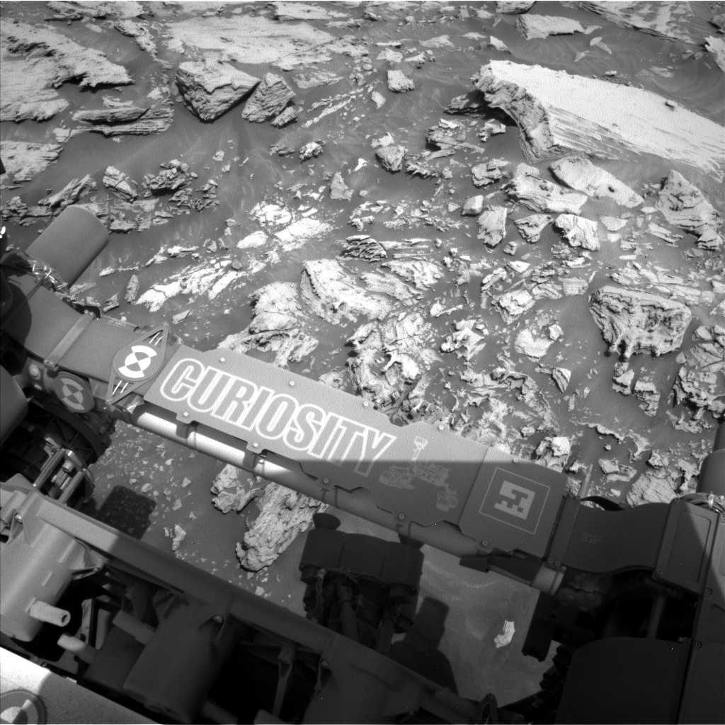 Extreme Tilt! Curiosity Front Hazard Avoidance Camera Left B image acquired Sol 2693, March 4, 2020.