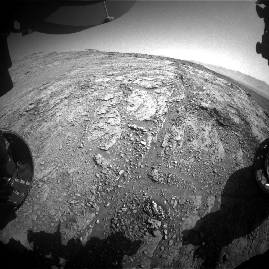 Curiosity Front Hazard Avoidance Camera image taken on Sol 2542, October 1, 2019.
