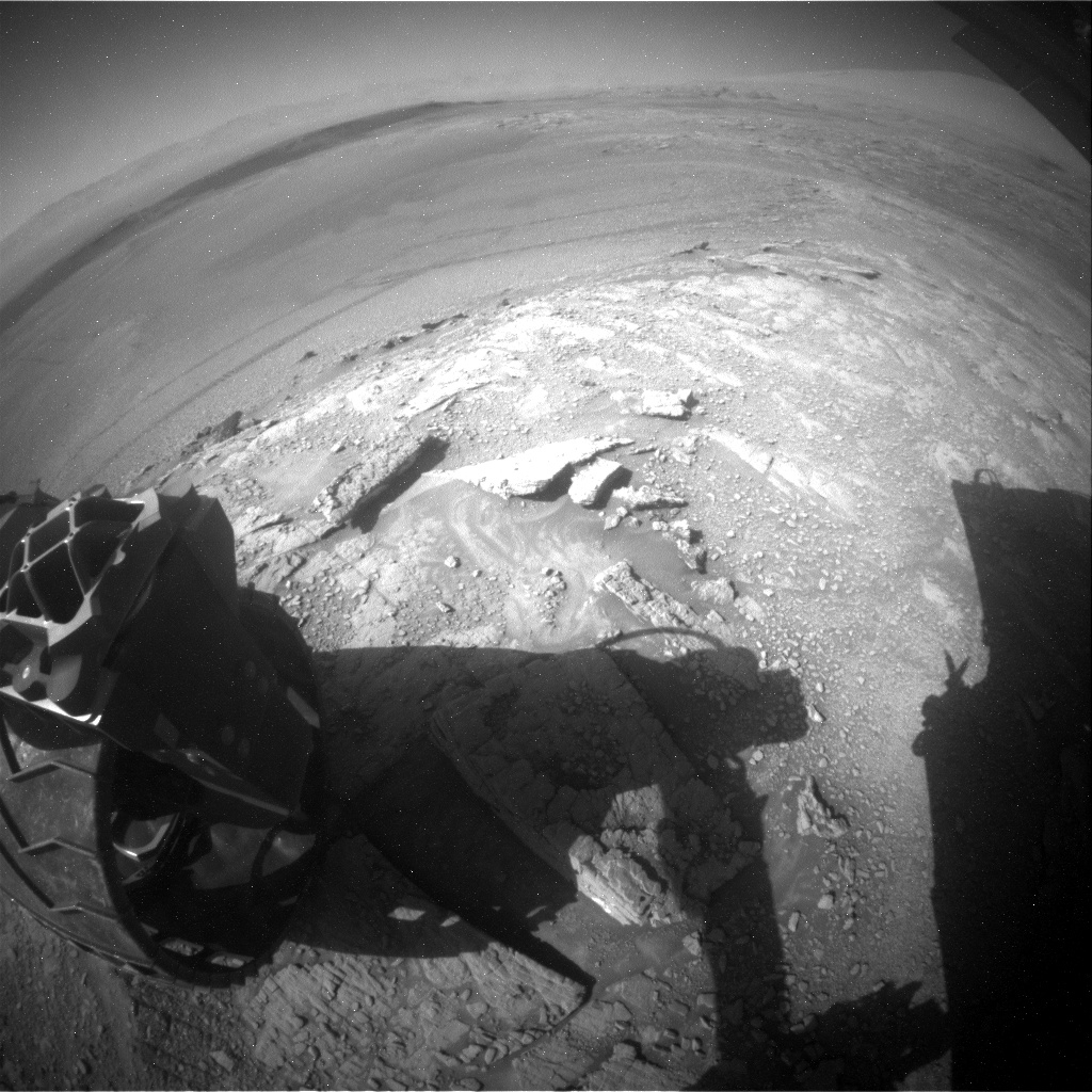 Curiosity Rear Hazard Avoidance Camera photo acquired on Sol 2542, October 1, 2019.