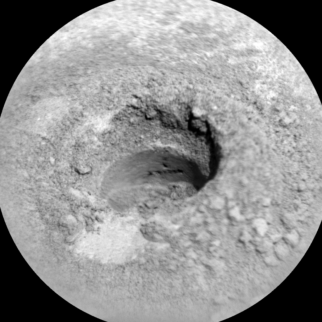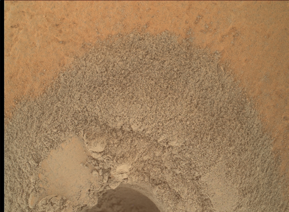 After the robot’s arm is stowed, the plan calls for the Chemistry and Camera (ChemCam) to target the inside wall of the drill hole as well as take a long-distance mosaic of Gediz Vallis and the Greenheugh Pediment.