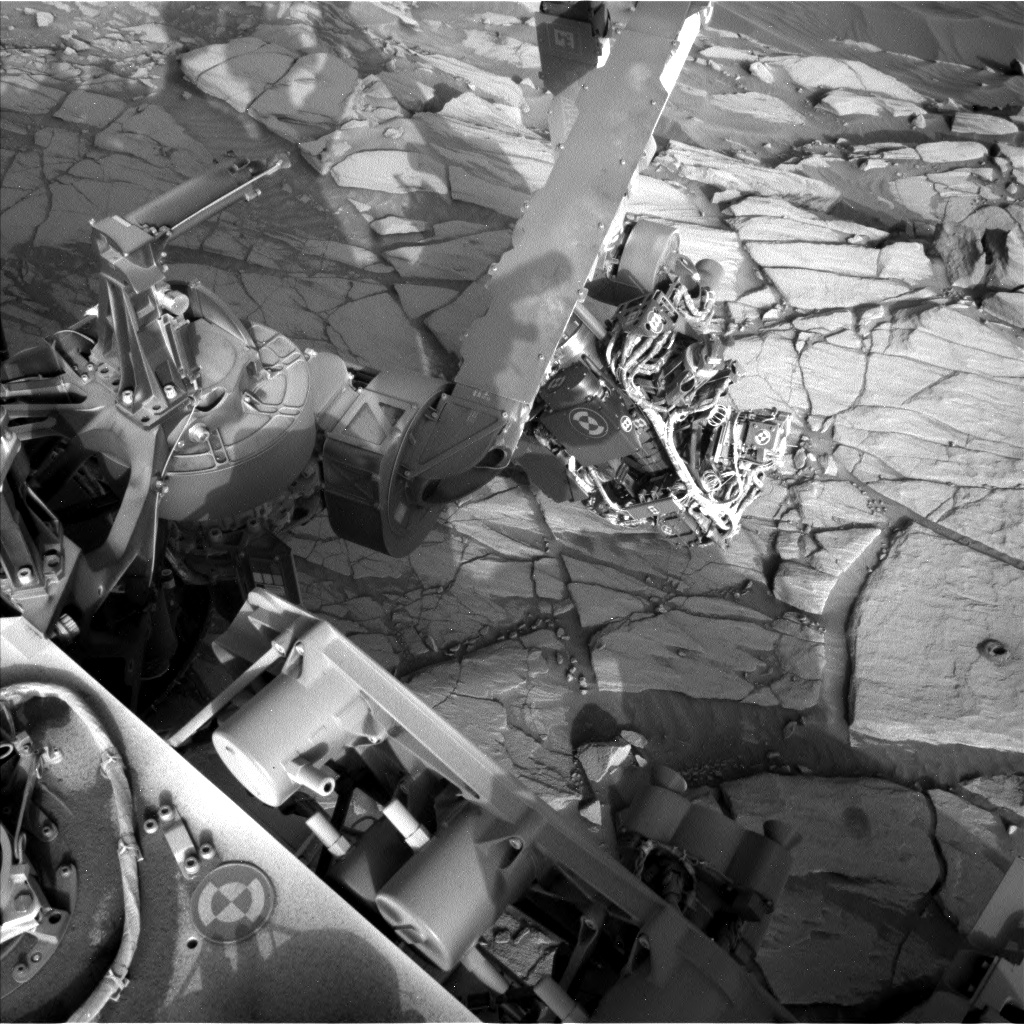 During last Monday’s plan, the rover’s arm was placed over the drill tailings from the Edinburgh drill hole to study them with the robot’s Alpha Particle X-Ray Spectrometer (APXS) and the Mars Hand Lens Imager (MAHLI).
