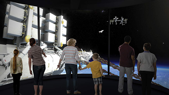 Ascend to Earth orbit aboard a simulated space elevator of the future. During your ascent, breathtaking scenery, digital displays and a virtual tour guide describe the aircraft, spacecraft and aerospace phenomena.