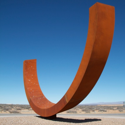 New Mexico’s Department of Cultural Affairs funded the sculpture designed specifically for the spaceport through the Art in Public Places program. The simple yet strong design is to convey the beginning of a New Space Age.