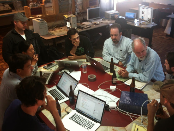 High-speed chats! Google Creative Lab, Pixel Corps, and ISEE-3 Reboot Team planning for today’s live webcast from McMoons – a former McDonald’s fast food eatery in Silicon Valley.