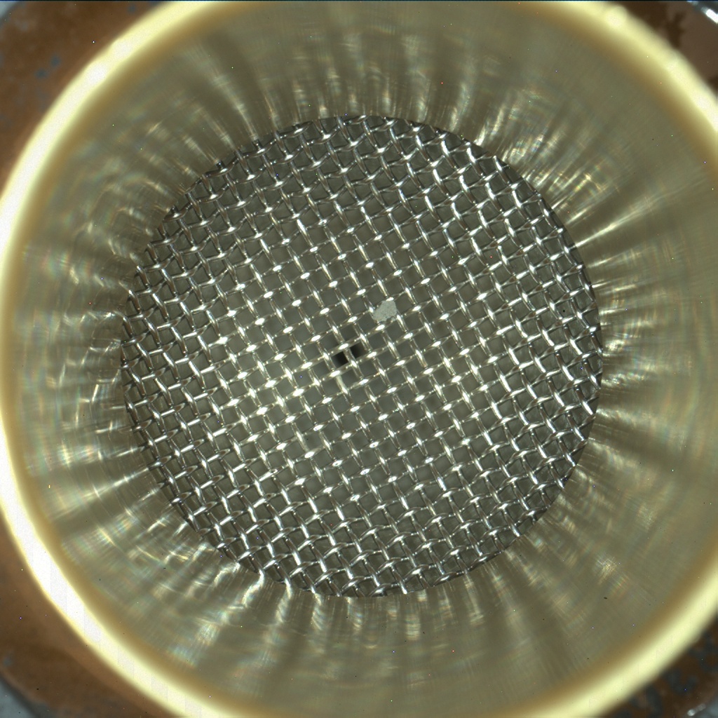 MAHLI image taken August 4, 2015, Sol 1064 of inlet funnel of the Chemistry & Mineralogy X-Ray Diffraction/X-Ray Fluorescence Instrument (CheMin).