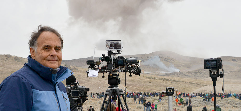 Inventor Dan Slater uses Remote Acoustic Sensor (RAS) technology during a test firing of the five-segment rocket motor headed for use on NASA’s Space Launch System booster.