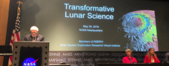 On Wednesday, May 30th, NASA held the “Transformative Lunar Science” talks in the James Webb auditorium at NASA Headquarters. Hosted by Dr. James Green, NASA Chief Scientist, the talks discussed cutting-edge science that is transforming our understanding of the Moon, and what we can still learn from our nearest neighbor.
