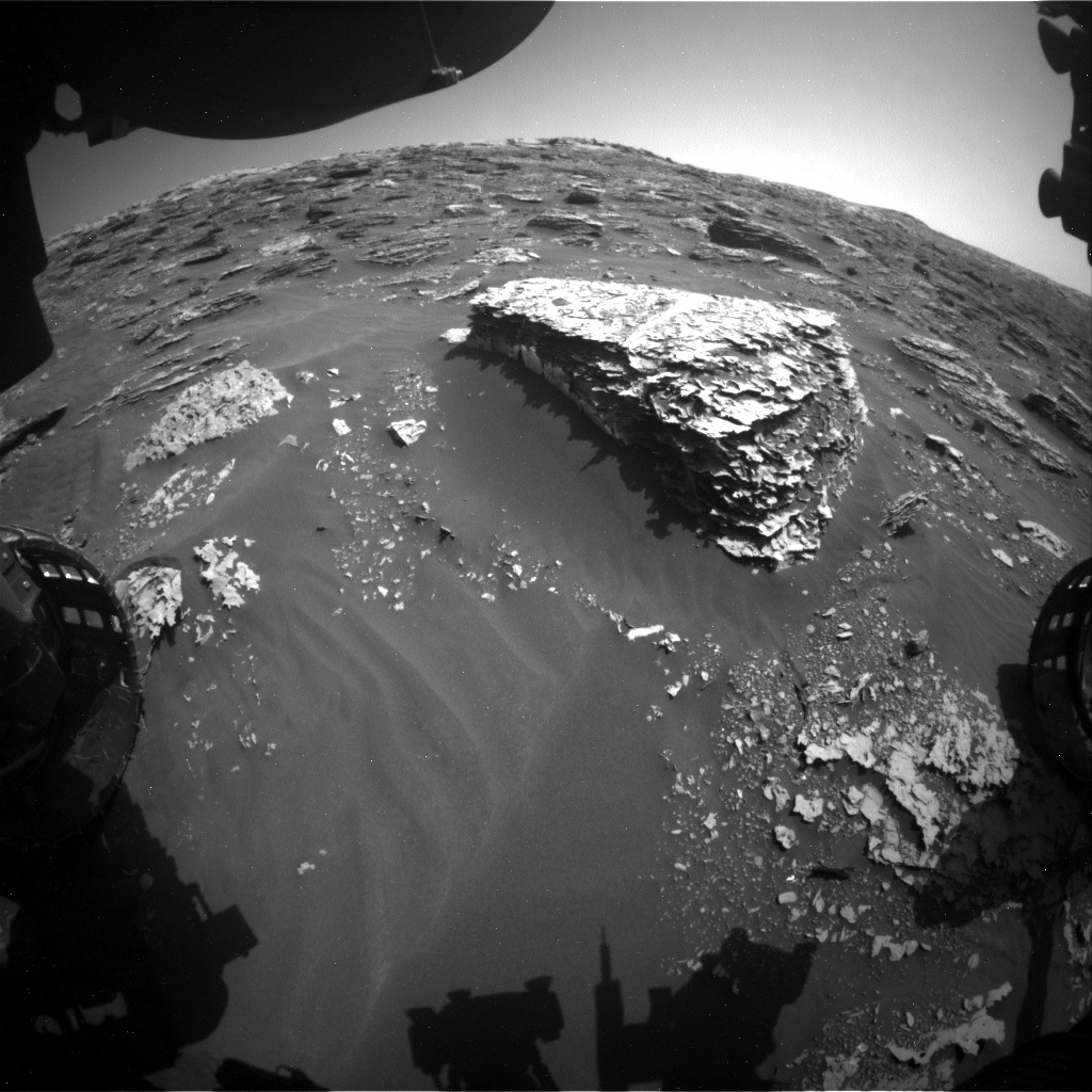 The uplink team was also able to squeeze in a few daytime observations before the overnight CheMin analysis: Right Mastcam images of Noodle Lake, the Duluth drill tailings, and the portion drop area to look for changes due to winds, Mastcam images of the Sun to measure dust opacity, and a Navcam zenith movie to look for clouds.