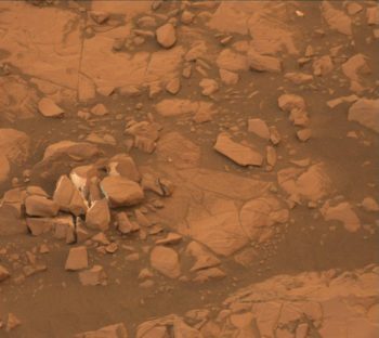 The rover’s Alpha Particle X-Ray Spectrometer (APXS) and Mars Hand Lens Imager (MAHLI) are slated to analyze a dark rock named “Orr.”