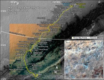 The map shows the route driven by NASA’s Mars rover Curiosity through the 2163 Martian day, or sol, of the rover’s mission on Mars (September 07, 2018).