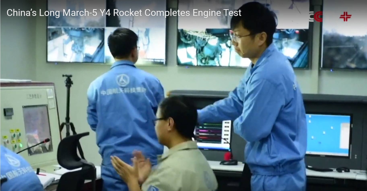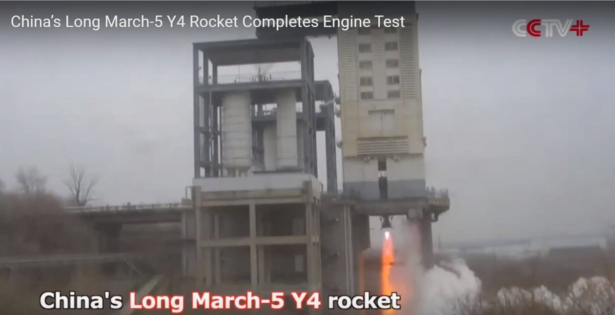 China’s Long March-5 Y4 rocket completed a 100-second test for its high thrust hydrogen oxygen engine on Sunday afternoon in Beijing.