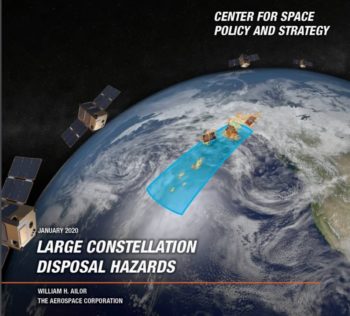 The assessment — Large Constellation Disposal Hazards – has been authored by William Ailor of The Aerospace Corporation and issued by the group’s Center for Space Policy and Strategy. Ailor is a Technical Fellow with the Center for Orbital and Reentry Debris Studies at The Aerospace Corporation in El Segundo, California.