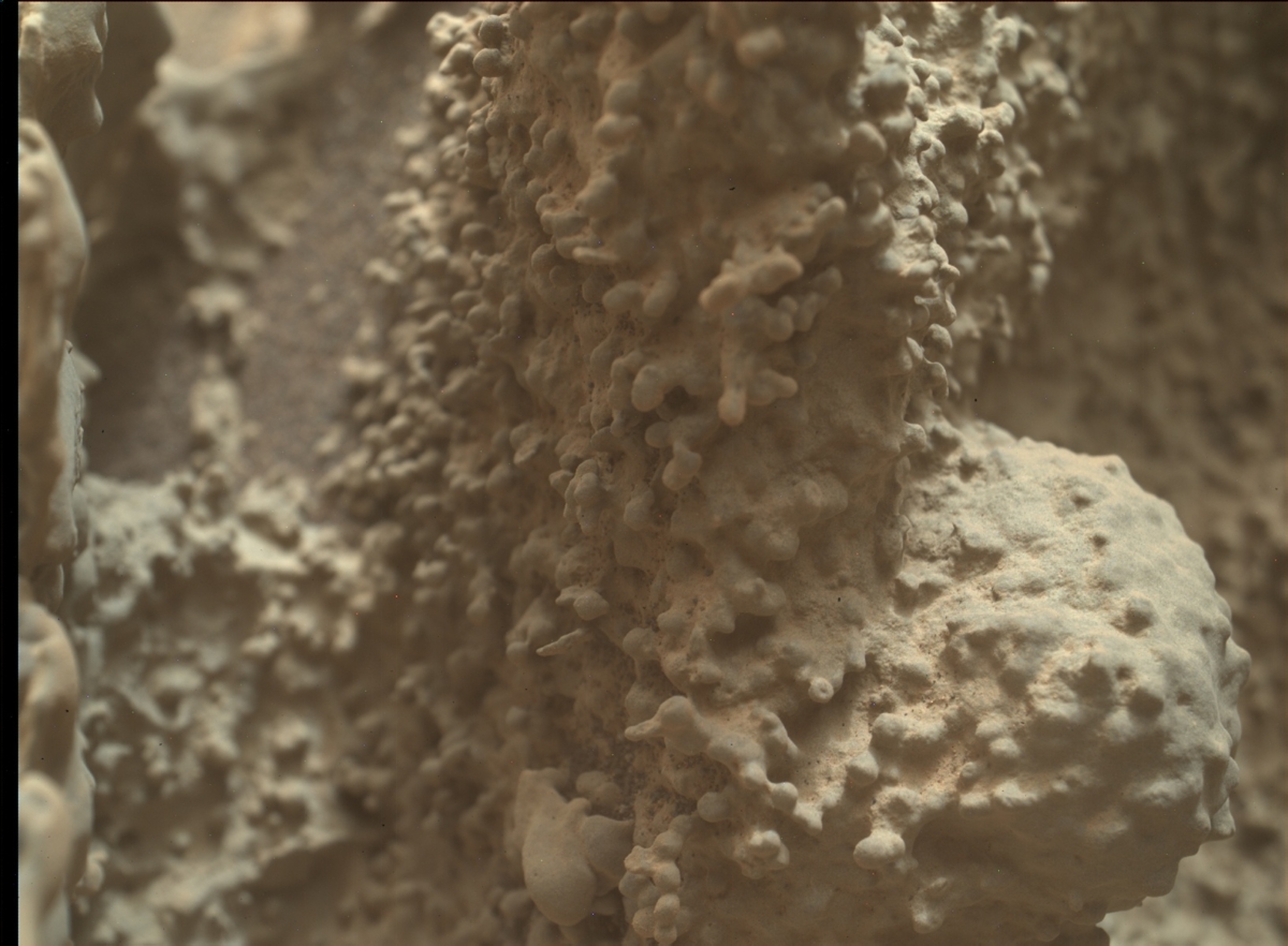 “It is an interesting texture, could be anything from melted volcanic glass to weathering sedimentary concretions to slime molds from outer space sent to take over our Solar System,” adds Penelope Boston, Senior Advisor for Science Integration at NASA Ames Research Center. “I don’t know the size scale on the image nor the context of where it is from, etc.”