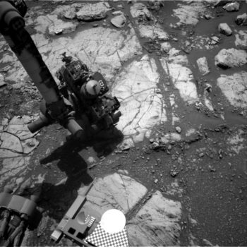Curiosity Dust Removal Tool (DRT) is in use as is Alpha Particle X-Ray Spectrometer (APXS), the Mars Hand Lens Imager (MAHLI) and ChemCam to make observations of “Berwickshire,” a typical-looking piece of bedrock.
