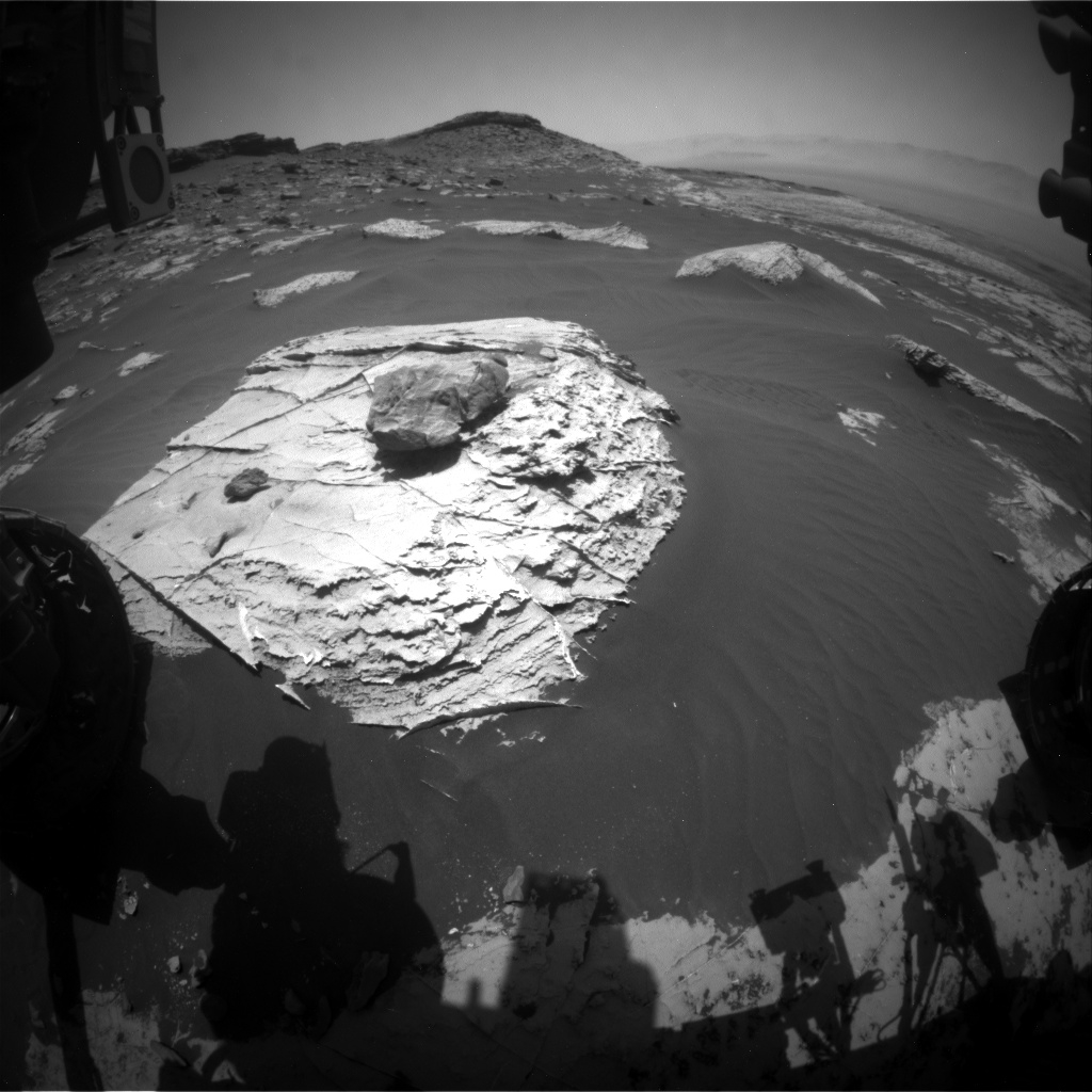 New imagery shows the MAHLI instrument literally up in the air due to an issue with MAHLI on sol 2735 that caused Curiosity’s arm motion to stop before the instrument was positioned on the rock target “Creig.”