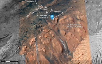 In an earlier report, Lucy Thompson, a planetary geologist at University of New Brunswick; Fredericton, New Brunswick, Canada, explains that Curiosity has been picking her way through sand, sharp boulders and ridges to find a way up onto the Greenheugh pediment.