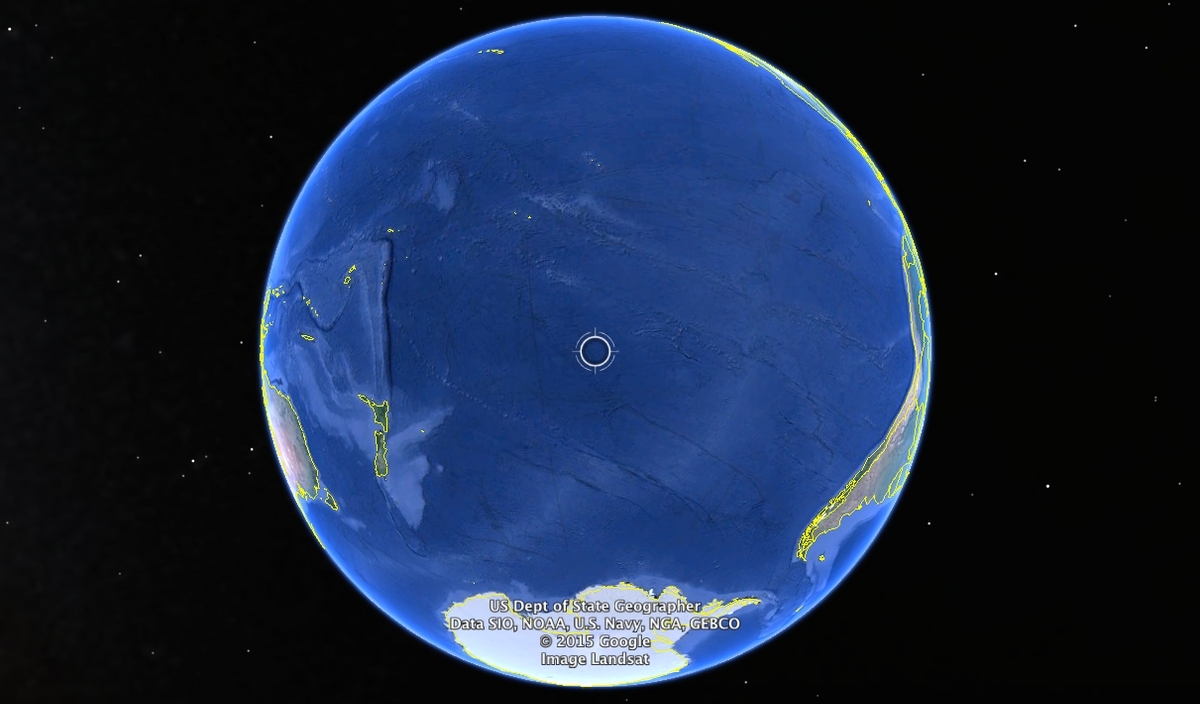 Splash down zone for the International Space Station, an area around Point Nemo, formally dubbed “the oceanic pole of inaccessibility.”