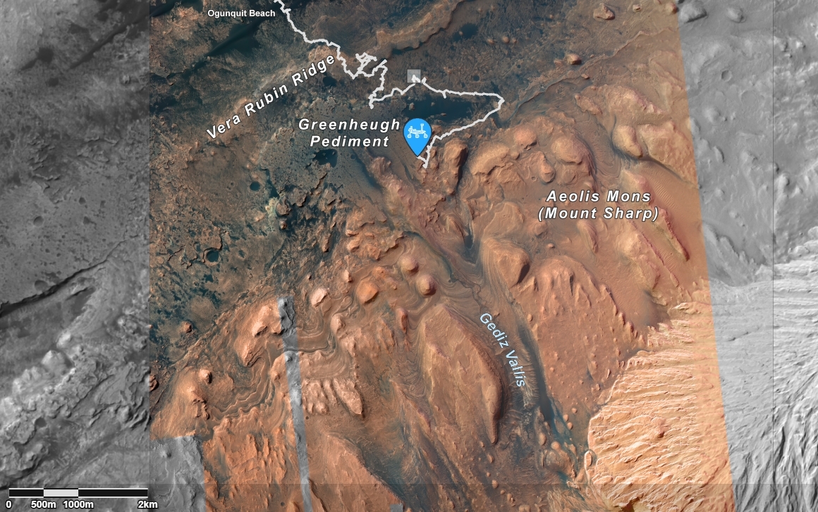 “The terrain continues to challenge us as we make our way up onto the Greenheugh pediment,” reports Fred Calef, Planetary Geologist at NASA’s Jet Propulsion Laboratory.