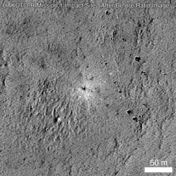 That lost-to-the Moon robotic spacecraft, Japan’s Hakuto-R Mission1, has been spotted by NASA’s Lunar Reconnaissance Orbiter.