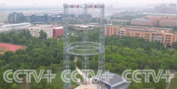 This space solar power station (SSPS) research consists of a 75-meter-high (246-feet) iron tower with four giant spherical steel jars filled with solar panels suspended from its top. The structure is designed to test a full system that generates power in space and transmits it back to Earth to be converted and distributed for terrestrial use, according to China Central Television (CCTV).