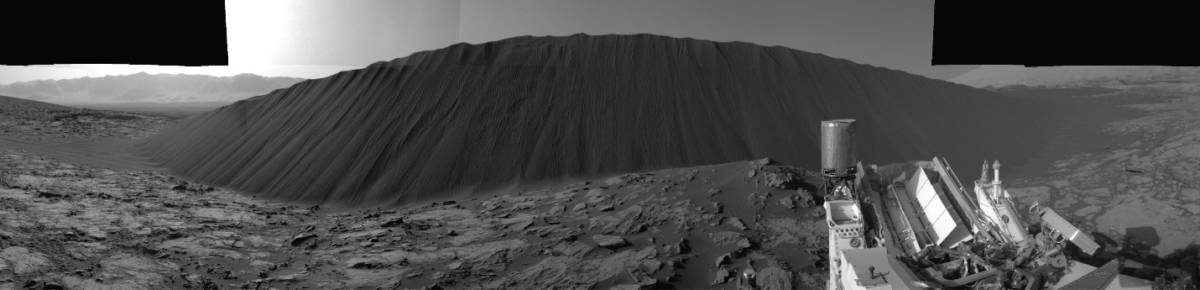 As the rover traversed the dune field and at each stop, scientists observed the physical properties of the sand dunes, such as grain size, rates of grain motion, and the overall bedform morphologies, using the robot’s Mars Hand Lens Imager (MAHLI), the Chemistry and Camera (ChemCam) instrument, Mars Descent Imager (MARDI) as well as the Mastcam, Navcam, and the Rover Environmental Monitoring Station (REMS).
