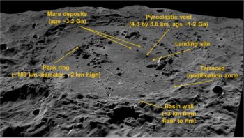 The landing site within Antoniadi crater is noteworthy because it contains the lowest point on the Moon. Antoniadi crater contains both a central peak and a central peak ring structure and is, thus, sometimes classified as a “proto-basin.”