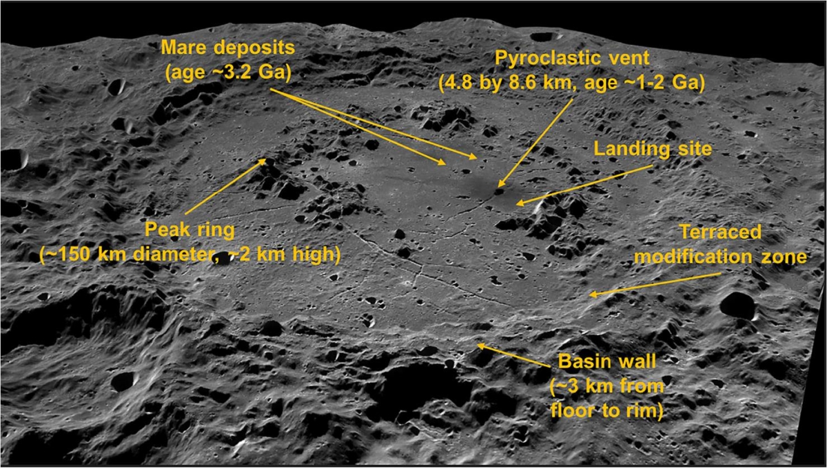 The landing site within Antoniadi crater is noteworthy because it contains the lowest point on the Moon. Antoniadi crater contains both a central peak and a central peak ring structure and is, thus, sometimes classified as a “proto-basin.”