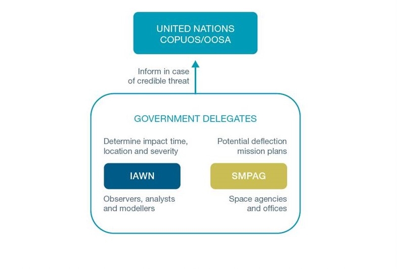 These two entities came into being through a series of recommendations for an international response to the risk of near-Earth object impact, endorsed by the United Nations Committee on the Peaceful Uses of Outer Space.