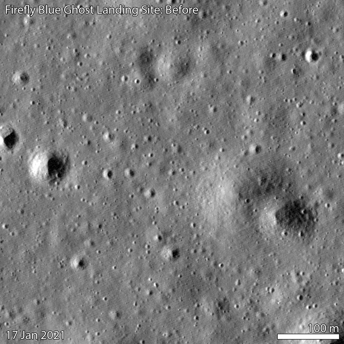 Also, before-and-after image blink emphasizes the Blue Ghost engine plume disturbance of the surface. Images taken by NASA’s Lunar Reconnaissance Orbiter (LRO).