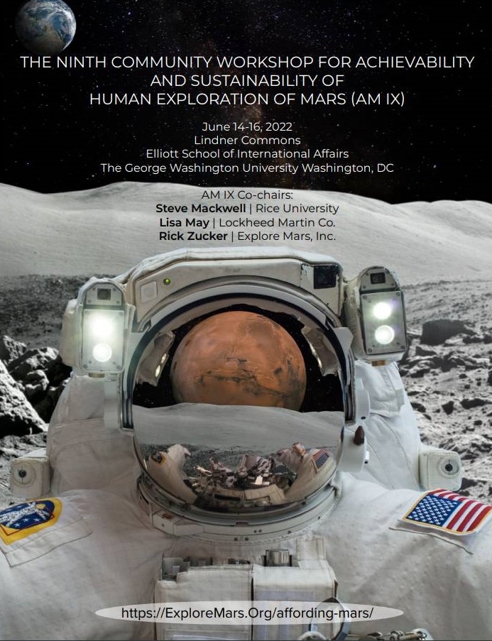 Explore Mars, Inc. has announced the release of the Report of the Ninth Community Workshop for Achievability and Sustainability of Human Exploration of Mars (AM IX), held on June 14-16, 2022 at The George Washington University in Washington, DC.