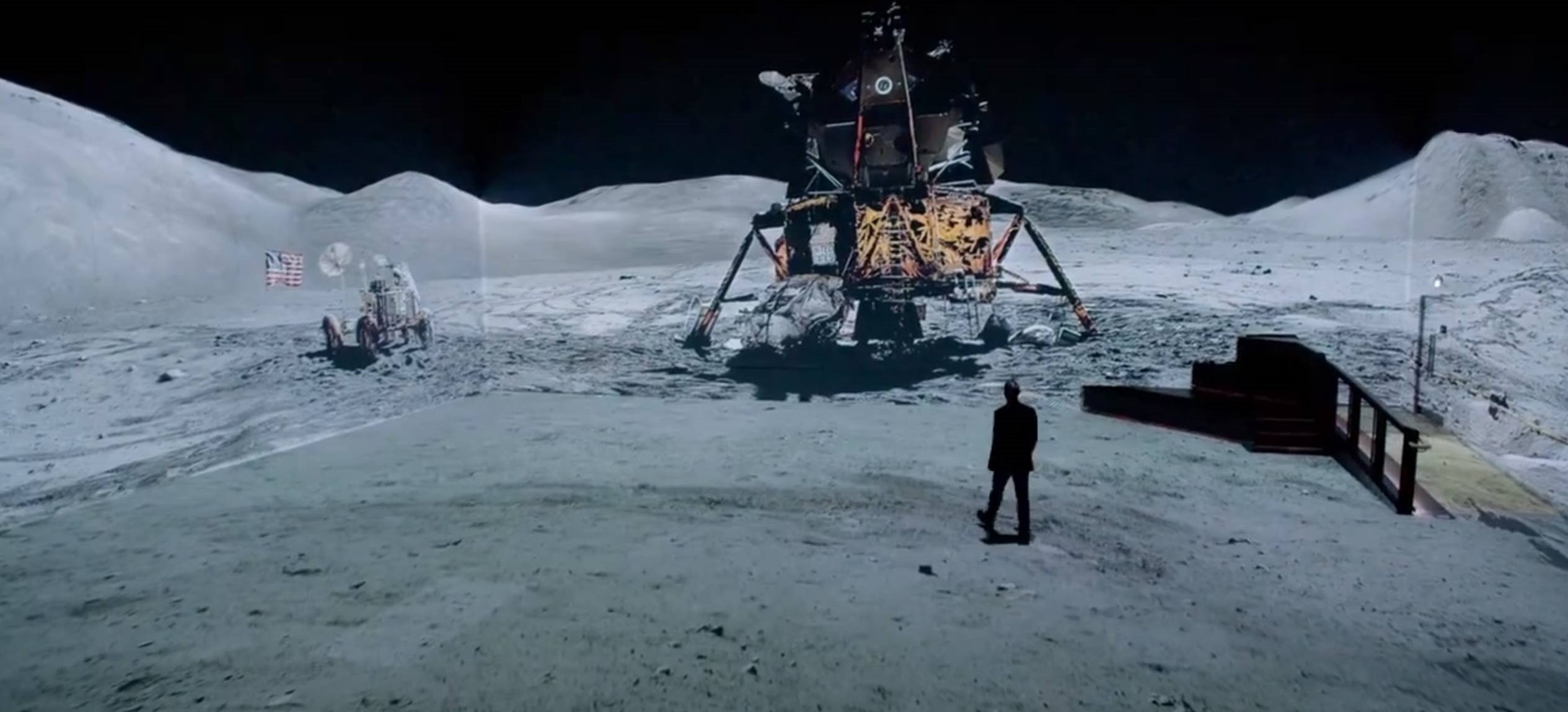 Images are projected at huge scale at Lightroom, London. The 800-speaker system pulsates during the Saturn V launch sequence. Once at the Moon, panoramic images envelop the viewer.