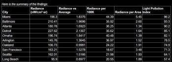 The results stem from a combination of factors to establish a “light pollution index,” ranking cities from the most to the least light-polluted.