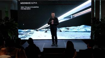 Elon Musk showcases electromagnetic mass driver on the moon during xAI staff meeting.