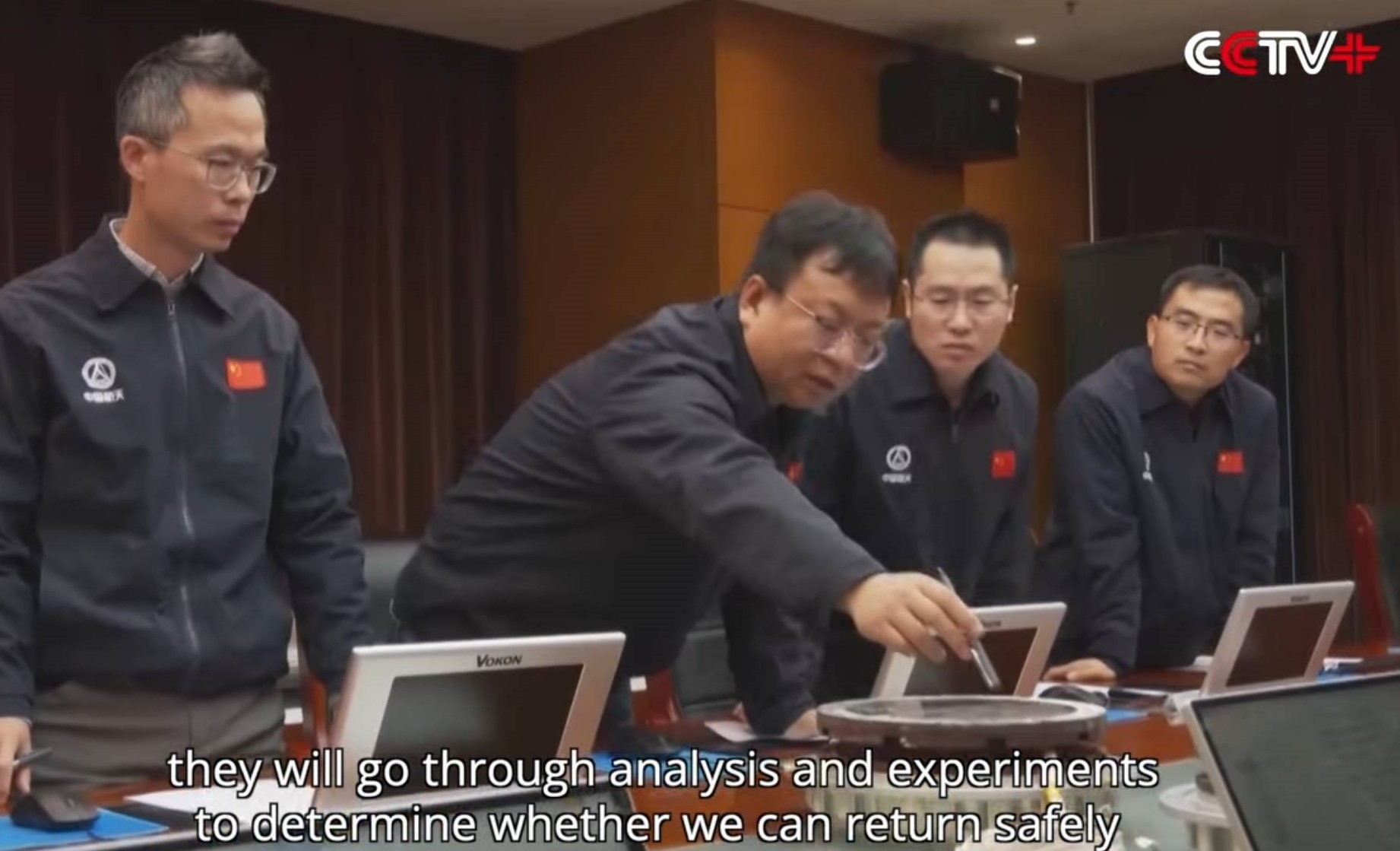 Ground team experts discuss Shenzhou-20 cracked window.