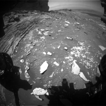 “While this location gives us spectacular views of the layering, veins, and nodules exposed on the side of the outcrop, it was actually chosen to support an experiment with Curiosity’s neutron spectrometer, DAN (Dynamic Albedo of Neutrons),” Fraeman adds.