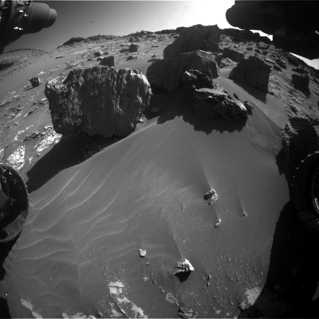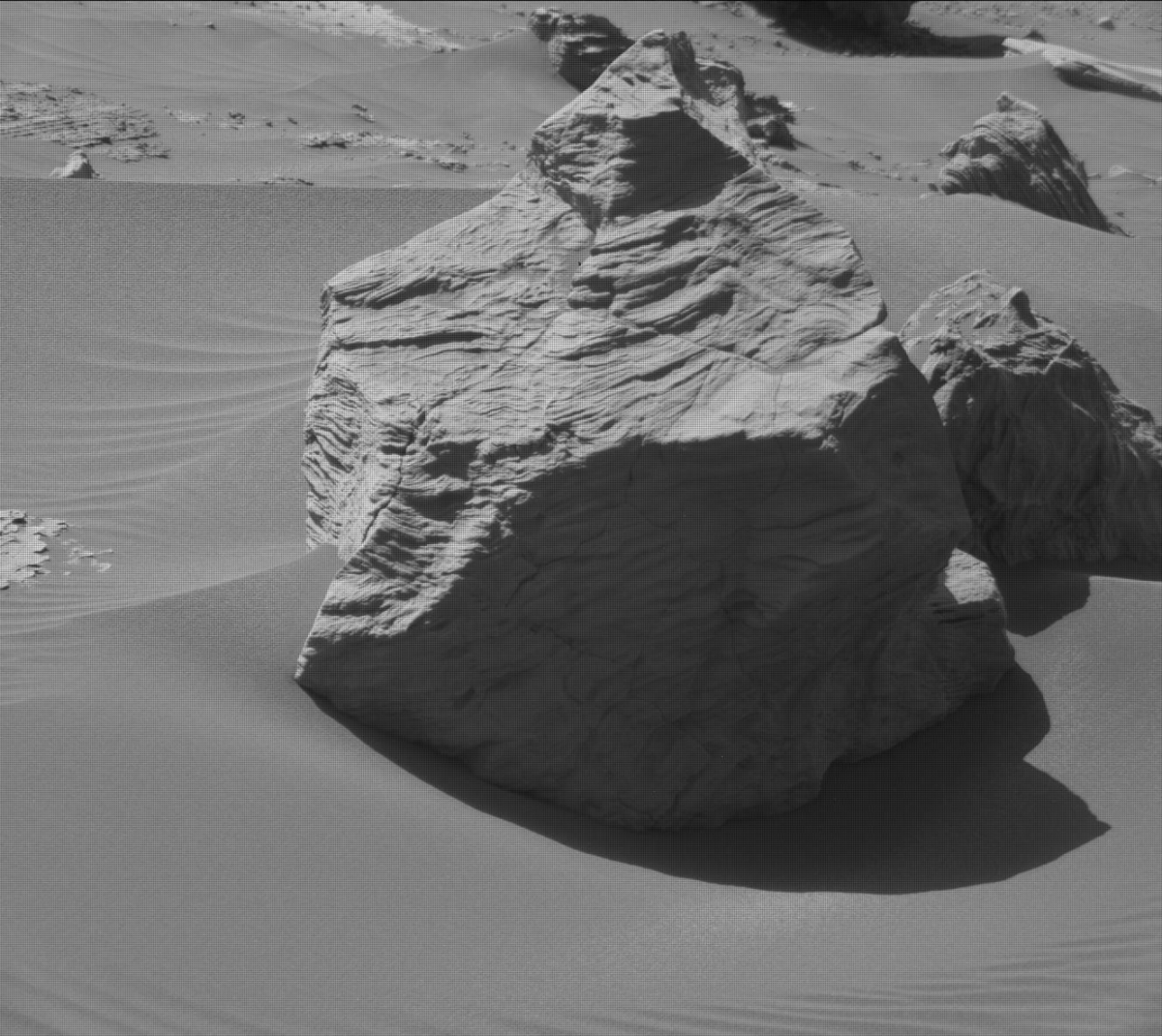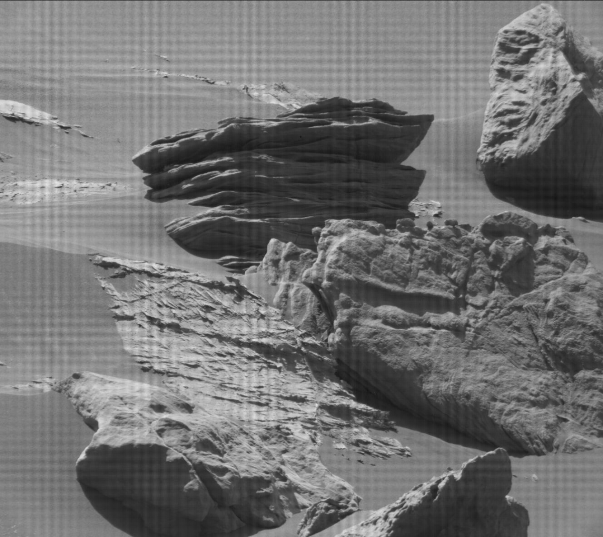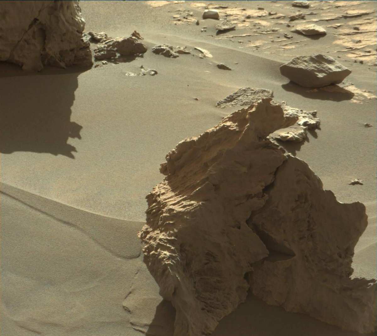 Fred Calef, a planetary geologist at NASA’s Jet Propulsion Laboratory, also reports, the rover’s recent drive took the “road less traveled” to investigate a bunch of boulders shed down from a cliff face off to the side of our expected traverse to the south.