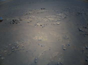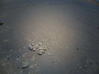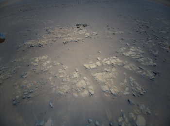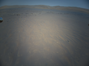 Just released imagery shows NASA Ingenuity’s 16th flight on Mars. The helicopter acquired these images using its high-resolution color camera. This camera is mounted in the helicopter’s fuselage and pointed approximately 22 degrees below the horizon.
