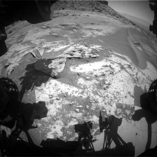 The workspace imaging that came down to Earth confirmed that Curiosity had successfully broken some of the nodules, such that researchers were able to make several observations just before conjunction. But they were not able to use the arm mounted APXS and MAHLI instruments; we did not want the arm left out over conjunction.
