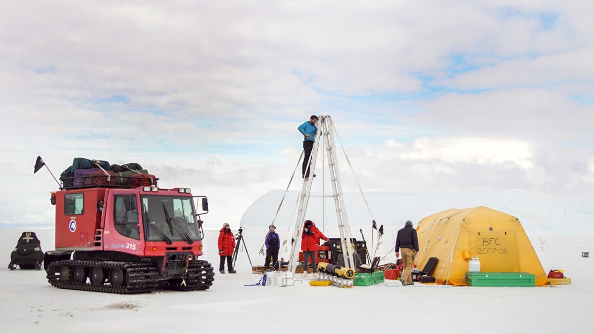 Britney Schmidt, associate professor of astronomy and of earth and atmospheric sciences, and her team set up their field site in Antarctica in 2018. They’re currently in Antarctica through February 2022.