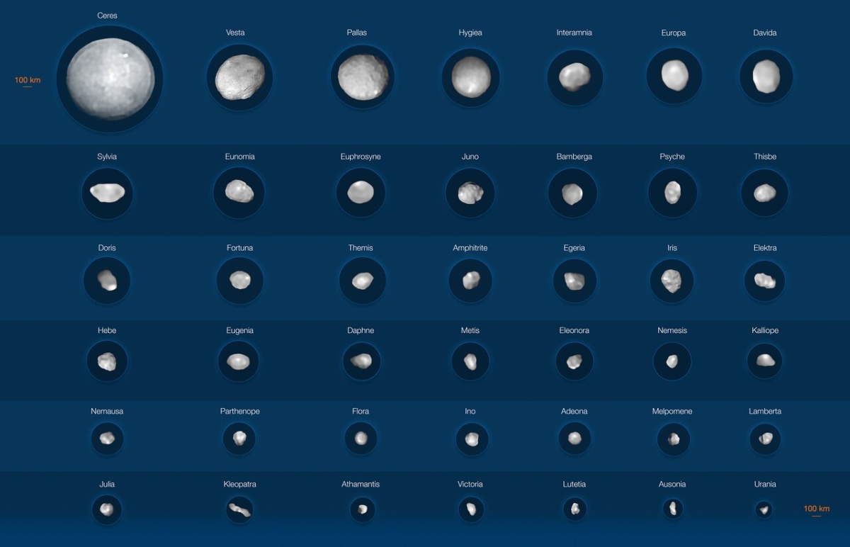 Forty-two of the largest objects in the asteroid belt between Mars and Jupiter have been imaged. Taken in the whole, the observations reveal a wide range of peculiar shapes, from spherical to dog-bone. That imagery can help astronomers trace the origins of the asteroids in our Solar System.