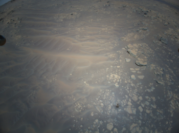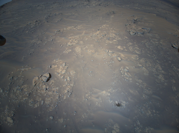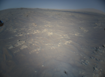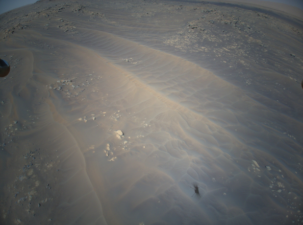These images were produced by the craft’s high-resolution color camera mounted in the helicopter’s fuselage and pointed approximately 22 degree below the horizon.