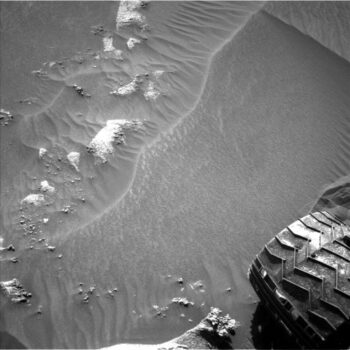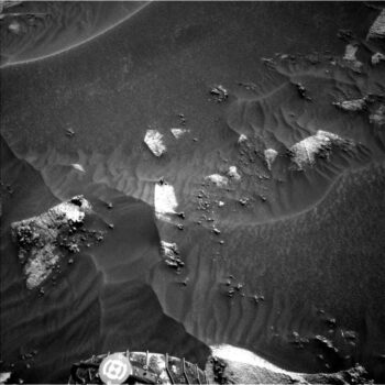 Ken Herkenhoff, a planetary geologist at USGS Astrogeology Science Center in Flagstaff Arizona, reports that the robot’s Sol 3216 drive went well, placing the rover in an area of bright bedrock partly covered by dark sand.