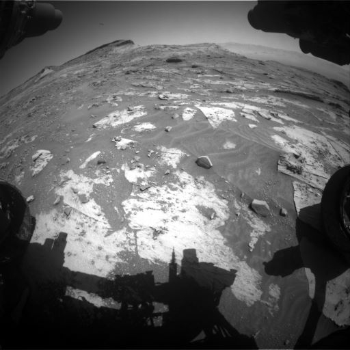 In the previous plan, Curiosity traveled approximately 131 feet (40 meters) through fairly rocky terrain that coincides with the transition region between the clay-bearing bedrock that the robot has been exploring for the past few years and the overlying sulfate-bearing materials.